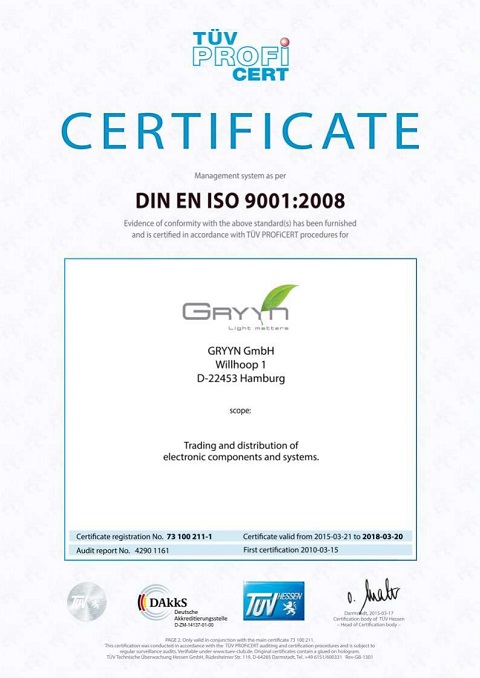 We have aligned ourselves with the requirements of the quality management system ISO 9001:2008 and are now certified since March 2010 according to the DIN EN ISO 9001:2008 norm always in the latest version.